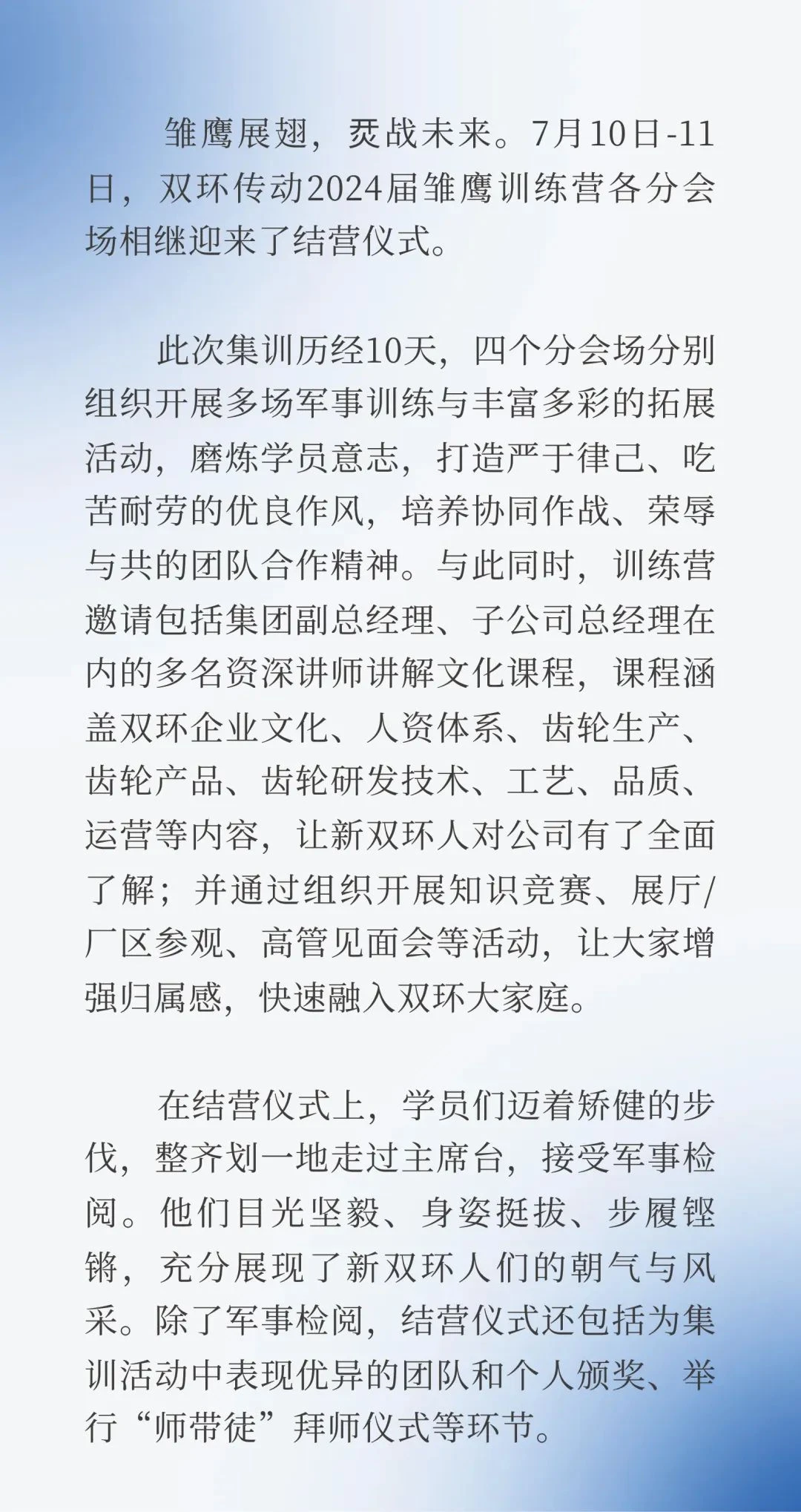 雏鹰展翅 烎战未来|双环传动2024届雏鹰训练营圆满结营