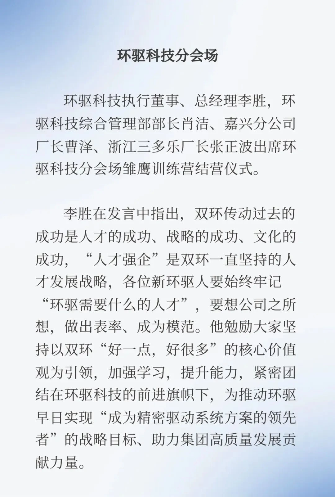 雏鹰展翅 烎战未来 | 双环传动2024届雏鹰训练营开营仪式隆重举行
