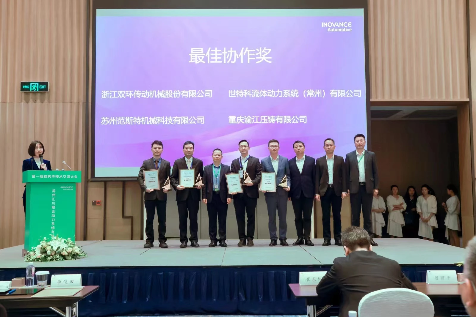 11月19日,汇川联合动力首届结构件技术交流大会在苏州举行。双环传动董事长吴长鸿应邀出席大会,在现场接受了“汇川联合动力最佳协作奖”表彰并作为优秀供应商代表发言。