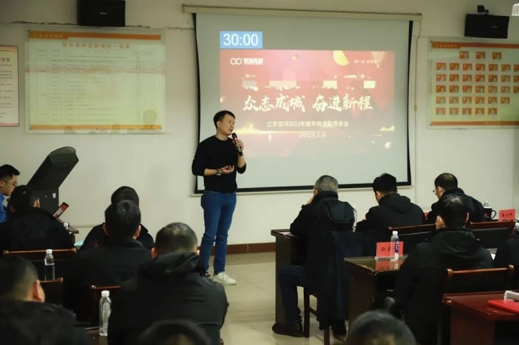 汇报完毕后,卢浩立足江苏双环全局作年度总结并做出重要讲话。他表示2022年江苏双环在多方面取得亮眼的成绩,2023年仍需高举发展大旗,奋力补齐短板,推进提质增效,加快做强做优,不断提升企业竞争力。卢浩讲话紧紧围绕双环战略目标,并从产品布局、人才搭建、资源整合、文化引导等方面给予悉心指导。