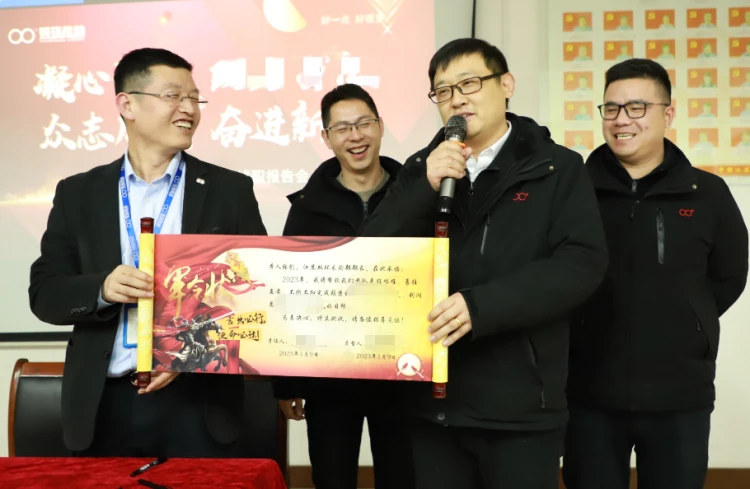 随后,蒋亦卿在重要指导讲话中,肯定江苏双环2022年度攻坚克难取得一系列发展成果,还为江苏双环2023年度指明前进方向确立行动指南。此外,他特别强调了忧患意识,各级管理干部要重视和兄弟子公司间的差距,精准洞察市场发展趋势,牢固树立以目标为导向的工作意识,将把握未来市场发展方向摆在突出位置,加快发展步伐,将持续稳定发展作为出发点和落脚点。鼓励与会管理干部有效发挥先锋模范关键作用,抢占关键赛道,多渠道并举增加竞争优势。