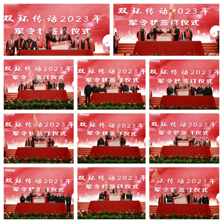 “双环传动,勠力同心、冲刺目标。”双环本部等11家子公司团队,手握战旗,浩浩荡荡登台亮相,共同喊出冲刺口号,气势如山、豪气冲天。各子公司铿锵有力地喊出团队口号,团队旗帜上鲜红的“必胜”,包含着2023年目标必能如期完成的强大信心。