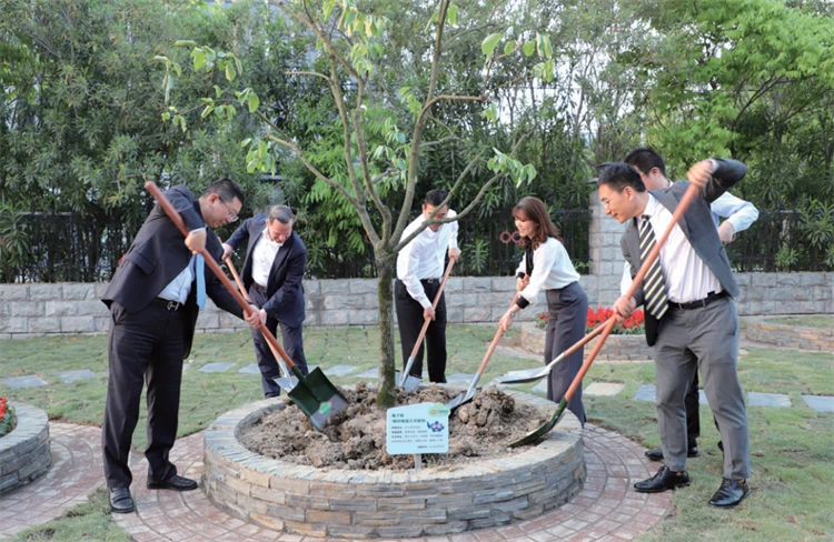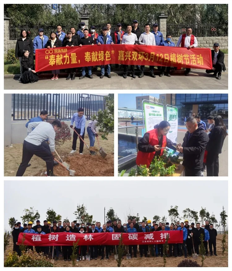 在公司推动下,双环自上而下,大力宣扬绿色环保发展理念。双环传动董事长吴长鸿、总经理MIN ZHANG等高层领导以及各子公司总经理,身体力行,通过大会宣讲低碳发展,带头开展植树活动等行动,传递环保理念;各单位通过开展“植树节活动”“朋友圈点赞”“碳中和有奖竞答”等系列环保宣传活动,分享节能环保知识,播种绿色发展梦想,将环保理念根植于每个员工心中。同时,双环还邀请客户共建双环友谊林,以生机和绿色见证生生不息的双方情谊。