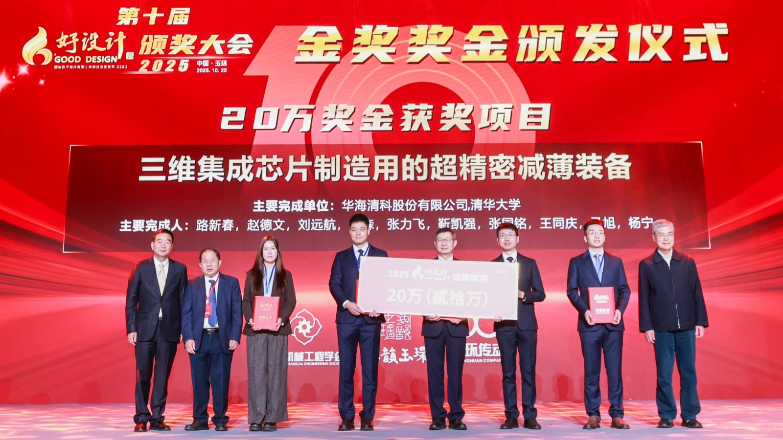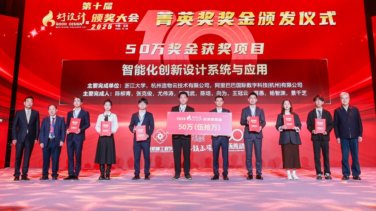 为激励创新、支持人才成长,在双环传动以及吴长鸿董事长的大力支持下,自2025年度起,将从好设计奖捐赠经费中专门列支奖金,从金奖获奖项目中最多优选3个项目发放奖金进行奖励,最高奖金额100万元;从菁英奖获奖项目中最多优选3项颁发奖金,最高奖金额50万元。大会现场,潘云鹤院士、林忠钦院士、双环传动董事长吴长鸿共同为本年度好设计优秀项目颁发奖金。