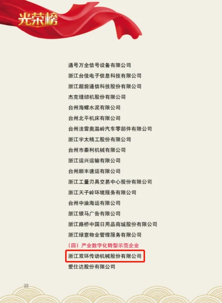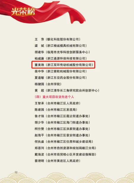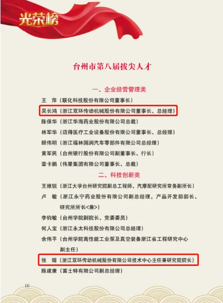 其中,我司荣获“科技创新先进企业产业”和“数字化转型示范企业”两项称号,公司董事长吴长鸿先生荣获台州市企业经营管理类第八届拔尖人才奖项,监事会主席董美珠女士荣获招才引智先进个人奖项,机械研究院院长张靖先生荣获台州市科技创新类第八届拔尖人才奖项。
