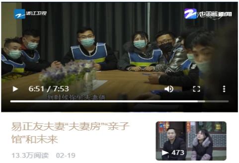 2月19日下午,以双环传动新员工易正友夫妻千里入职双环为主题拍摄、制作的专题片《易正友夫妻的“夫妻房”“亲子馆”和未来》在浙江卫视正式开播,受到了社会广泛关注,当天点击量超过13万次。