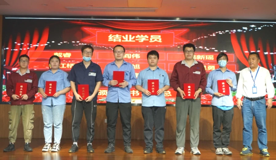 会议现场进行了第一届学员结业和优秀学员、师傅表彰仪式,优秀学员和优秀师傅分别发言。“在本次培训活动中,机遇与挑战并存,作为师傅,感谢公司能够提供机会,让我们和学员相互学习,共同进步,我们将言传身教,倾尽所有,将有用的经验分享给他们。”优秀师傅代表陈富丽说。