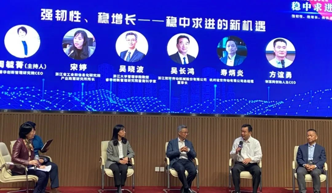 4月15日,双环传动吴长鸿董事长(下面简称吴董)与浙大吴晓波教授及多名企业、政府嘉宾共同参加了由睿华创新管理研究院举办的“强韧性、稳增长—稳中求进的新机遇”论坛。