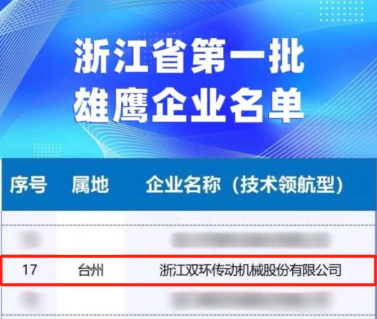 喜报!双环传动成功入选浙江省首批雄鹰企业名单