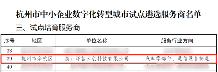 近日,杭州市经济和信息化局颁发《关于遴选杭州市中小企业数字化转型服务商的通知》,双环传动子公司环智云创以突出的服务能力和发展潜力入选杭州市中小企业数字化转型试点培育服务商名单。