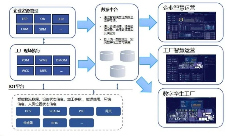 在生产领域,D-MOM数字化制造运营管理平台实现了产品自动化和柔性化生产,达成定制化生产和按需生产需要。在实现IT、OT、ET深度融合,与企业相关系统互联互通的同时,对接大数据平台,实现数据应用、企业智能管理与决策。