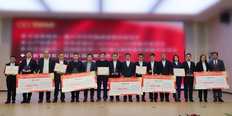 年会隆重表彰了在2023年度为集团发展做出突出贡献的项目团队,授予他们“董事长特别贡献奖”。该奖项由吴长鸿董事长特别设立,是对市场开发、生产经营、技术进步、管理创新四个领域非凡贡献者的最高褒奖。作为双环传动的标杆大奖,荣誉最高、奖金最大,将激励全体双环人勇往直前、奋发进取,不断超越自我,为实现自身价值、推动公司发展奋斗不已。