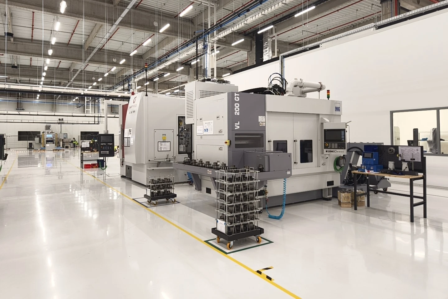 双环传动匈牙利子公司(EVORING)投资官宣暨奠基仪式于2023年11月17日举行,2024年3月,匈牙利工厂正式启动建设。工厂位于匈牙利亚斯费尼绍鲁市,贴近首都布达佩斯,工厂生产规模为2.4万㎡,在各方的共同努力下,在短短6个月的时间实现封顶,并于2025年5月21日迎来交付,已正式可为广大客户提供服务。